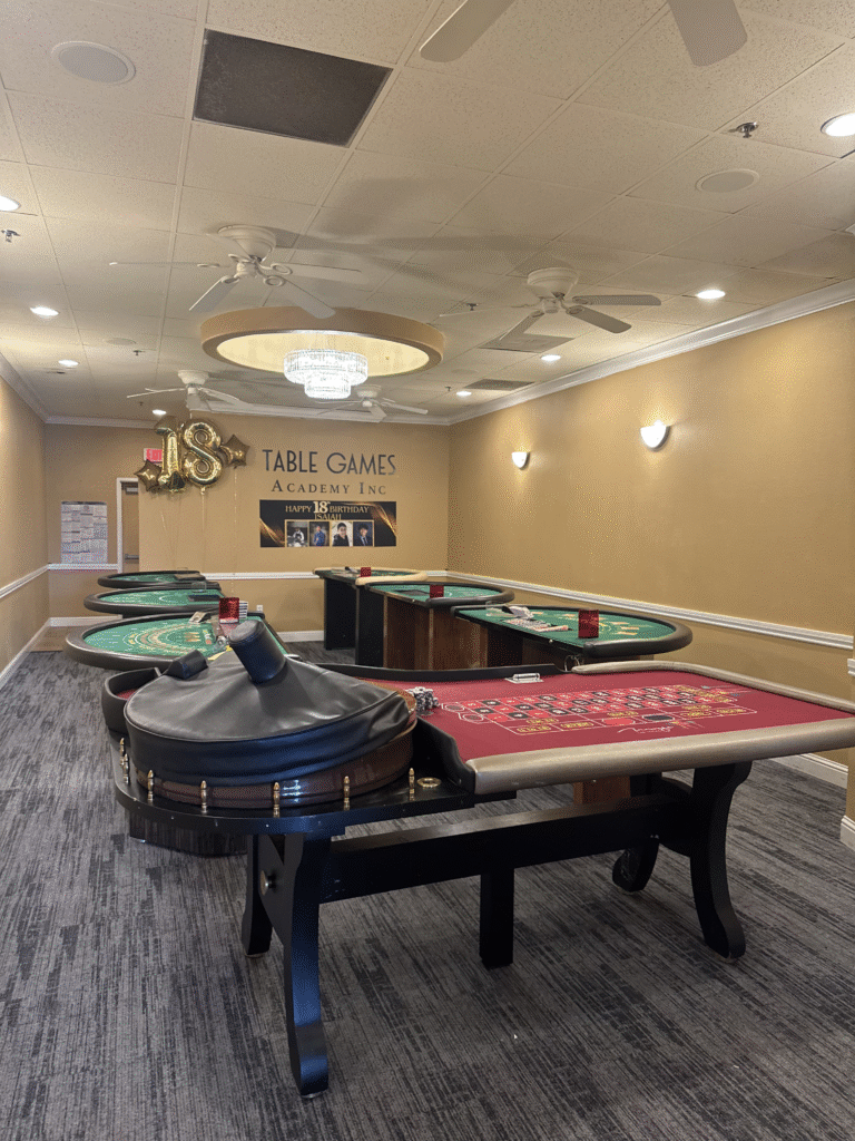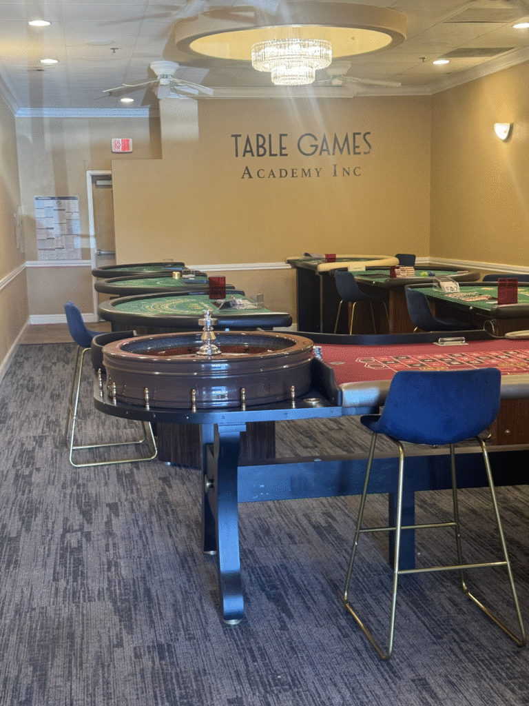 Take a closer look inside Table Games Academy. Our training environment is designed to mirror real casino table game operations, giving students hands-on experience as they prepare for opportunities in the casino industry.